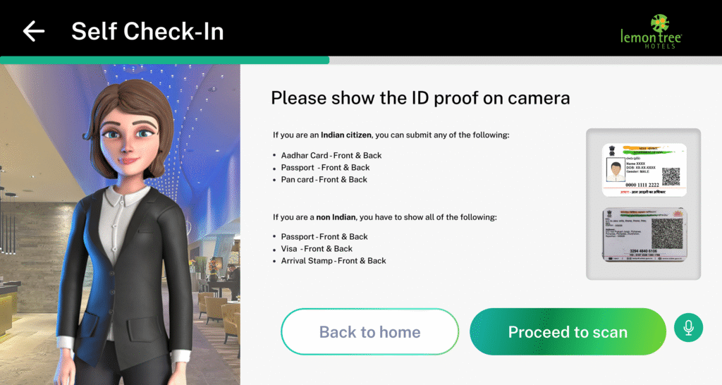 Alphadroid is a modern self-booking kiosk designed to streamline hotel check-ins through smart automation and intuitive UX. Built for speed, simplicity, and convenience, it empowers guests to book rooms, select preferences, and check in—all without waiting in line.